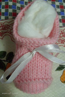 Sapatinho de trico para bebê.