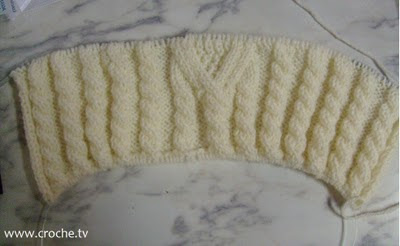 Este ano o Projeto Misterioso III começou no dia 8 de agosto, e está sendo feito um casaco, obaaa!!! Começou com trancinhas e mais trancinhas, (acho que nunca tinha feito tanta trança), e um desenho charmoso no meio delas.