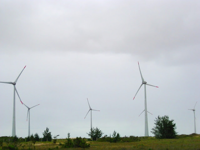O show de cataventos foi no sábado à tarde  quando fomos todos passear, mesmo com o dia nublado e com chuvinha de vez enquando. Mas valeu a pena!! Notei que eles estão aumentando mais e mais se estendendo por mais uma praia à alguns kilômetros daqui.