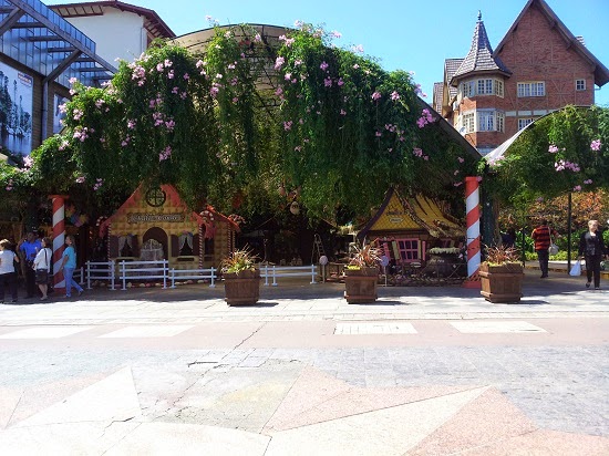 Aqui na foto acima as casinhas estavam sendo ainda decoradas e preparadas para a Chocofest que ia acontecer naquela semana . Tinha uma casinha feita somente de garrafa pet, muito interessante também. Ao fundo ao lado eu tinha fotos da maior escultura de Chocolates do mundo, era um coelho gigante que foi para o Guinness, mas por causa do roubo perdi as fotos.