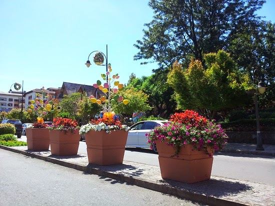 Tudo feito artesanalmente com bastante reciclados, mas imperceptíveis. Imagino a quantidade de artesãos que esta cidade tem. Fico pasma com a decoração que passa a cada ano, tanto na Chocofest, quanto no Natal Luz. Não tem tempo ruim para estes enfeites da decoração de rua, quando estão caindo vão lá e colocam outro novinho no lugar. Quando chega a noite a prefeitura traz caminhões pipa, para molhar as flores e gramas que ficam nas ruas principais de Gramado. Já vimos muitas vezes à noite a mudança de flores nos vasos que ficam nas ruas, tudo para no outro dia estarem floridas e tudo colorido para quem passar puder ver e prestigiar.