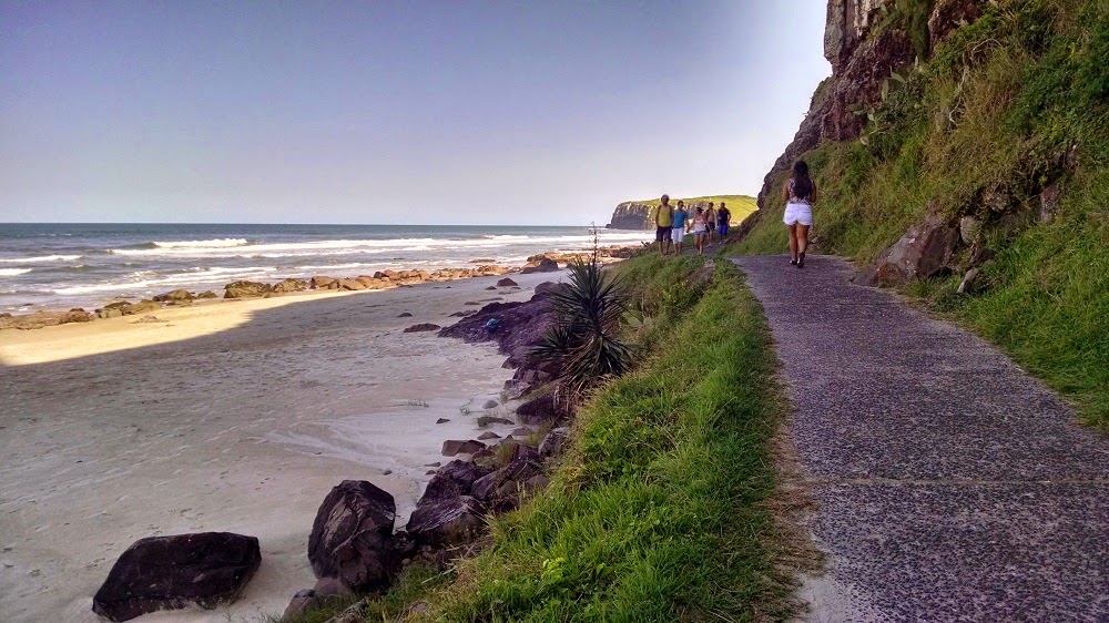 Quem aproveitou bastante o dia foi a Nicole, minha filha menor, nossa, como correu e se divertiu! Pra quem não conhece eu coloquei um mapa com trajeto de Porto Alegre para facilitar e saber onde fica…assim fica mais fácil e na próxima escolha de passeio, fica a dica: praia linda, com bastante natureza e lugares para explorar, como esta passagem mais abaixo nas fotos, que nunca fizemos, sempre subimos os dois morros, o que é muito legal também, temos uma visão aérea do mar, mas desta vez ficamos na praia e eu descobri um lugar que não tinha ido ainda, que fica na praia principal de Torres. Tu podes ver nas fotos uma trilha costeando o primeiro morro, e mais abaixo ver a praia com algumas pedras e desenhos formados pelas ondas do mar.