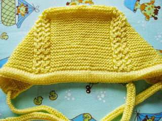 Este pequeno gorro vai caber confortavelmente em torno da cabeça de sua pequena. o chapéu é de malha e feito em uma  peça, (mais a fita),começando pela frente na extremidade, e que termina com uma costura  invisível (ou três agulha para  arrematar) e para baixo do centro para trás. o capô é moldada usando carreiras encurtadas.