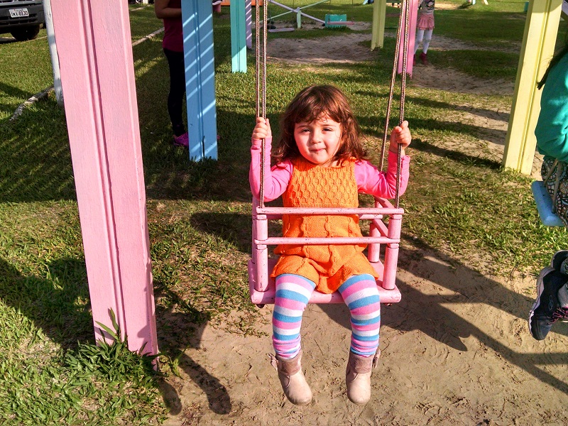 Fomos na pracinha usando também o vestido “Sprite”.