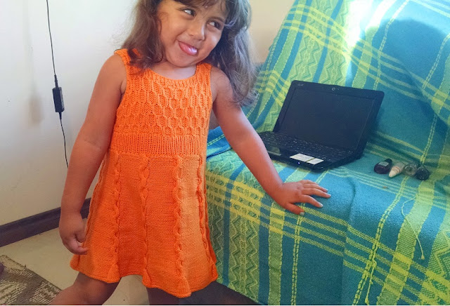 Tenho que recomendar esta linha também para o tricô gente linda!!! É um  ótimo fio  e continua com caimento legal e  bastante  macies. Terminei de tricotar ele em maio de 2015 e está super bem nela ainda. Claro que cuido sempre na hora de lavar. As roupinhas feitas em tricô coloco em um balde com um pouquinho de sabão em pó. Deixo de molho e depois volto para dar uma esfregadinha a mão e logo já faço o enxágue. Não torço eu só espremo e fim. Vai pro sol do lado avesso. Já lavei este vestido na máquina , mas a lavagem foi para roupas delicadas. Quando estava centrifugando parei na metade do tempo. Mas não recomendo, prefiro lavar a mão mesmo.