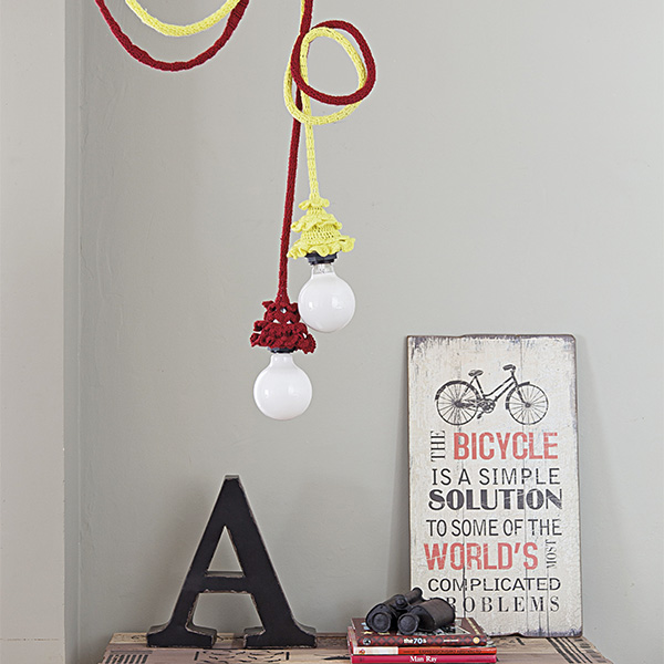 Um achado diferente, de crochê e decorativo! Nunca pensei em encapar um fio com crochê. Parece até perigoso, mas se tomarmos o devido cuidado e colocar uma luz ambiente fraquinha (e de Led principalmente porque não esquenta) creio que estará resolvido.