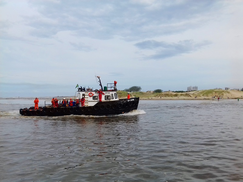 Este barquinho é da Petrobrás! Ao longe em “Tramandaí” temos carregamento de óleo  em alto mar. Mesmo sendo em alto mar conseguimos ver os navios ao longe, e  este vem vindo de algum trabalho que fez por lá.