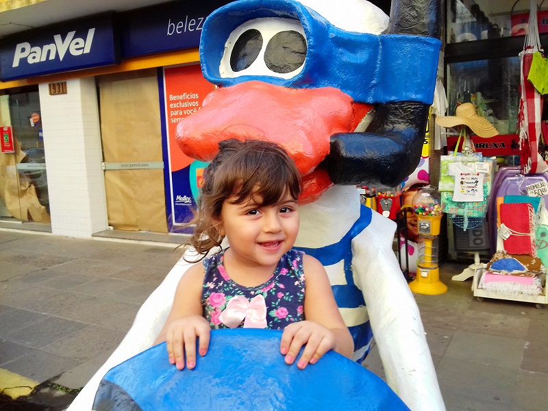 Minha bebezona!! Adora ir no pato ! Hoje passeamos pela tarde, comemos um sorvetinho básico, e fomos na pracinha.   Sempre que passamos por esta rua ela tem que subir nele…