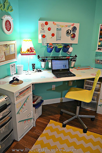 Tem vários materiais reciclados para a decoração de modo que ficou tudo muito útil. Adorei! Veja todos os detalhes no blog (que eu adorei), no link:  http://costuramor.blogspot.com.br/2013/07/meu-cantinho-criativo.html